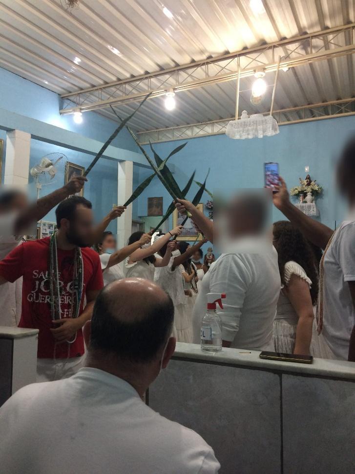 Towards the end of the session, the mediums handed each of the visitors one of the leaves to take back home and place it in front of their house. The “swords”, I was told, were considered as an extension of the protective power of Ogum cultivated during the session and served to protect the house from negative energies and to attract prosperity (prosperidade).